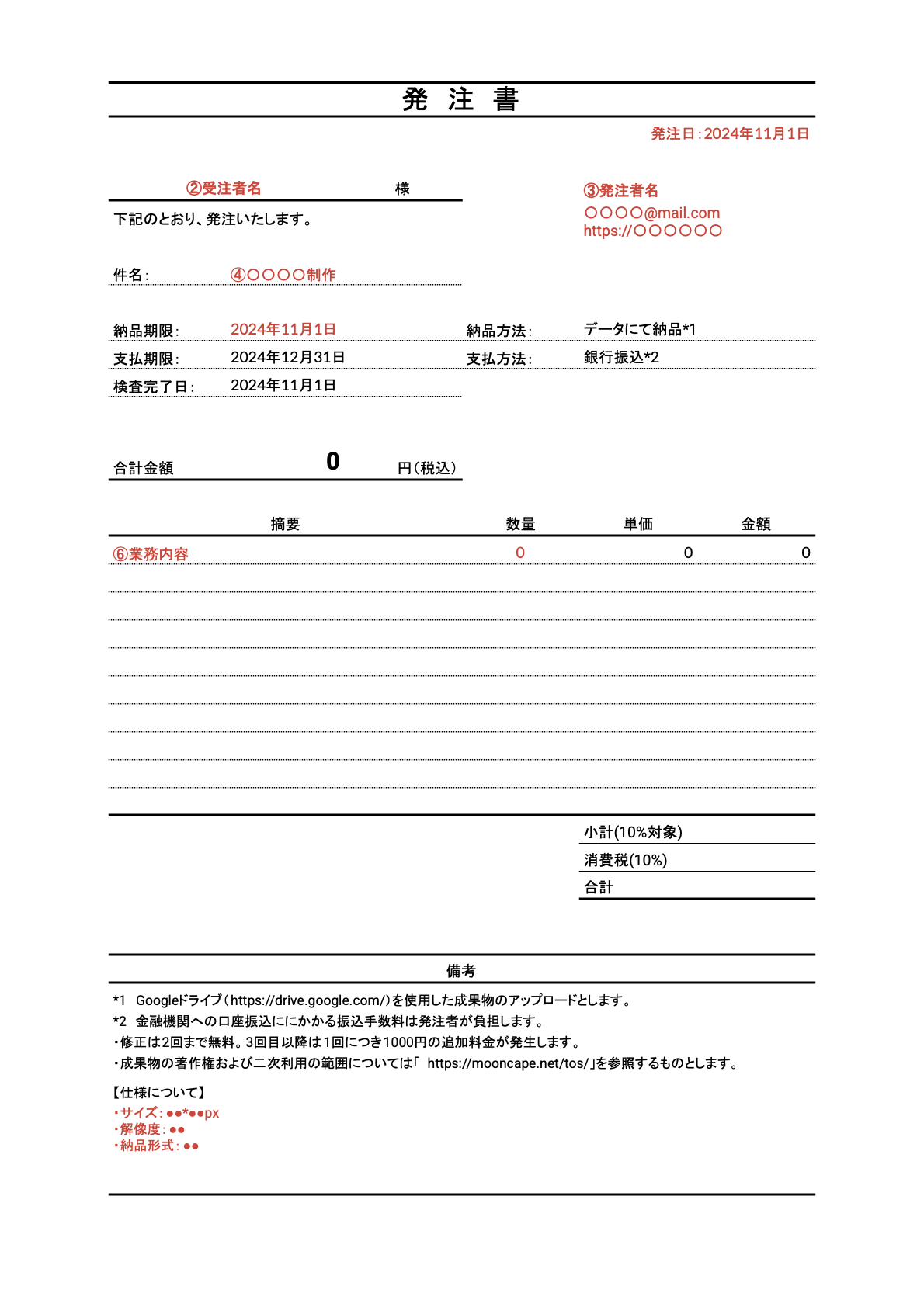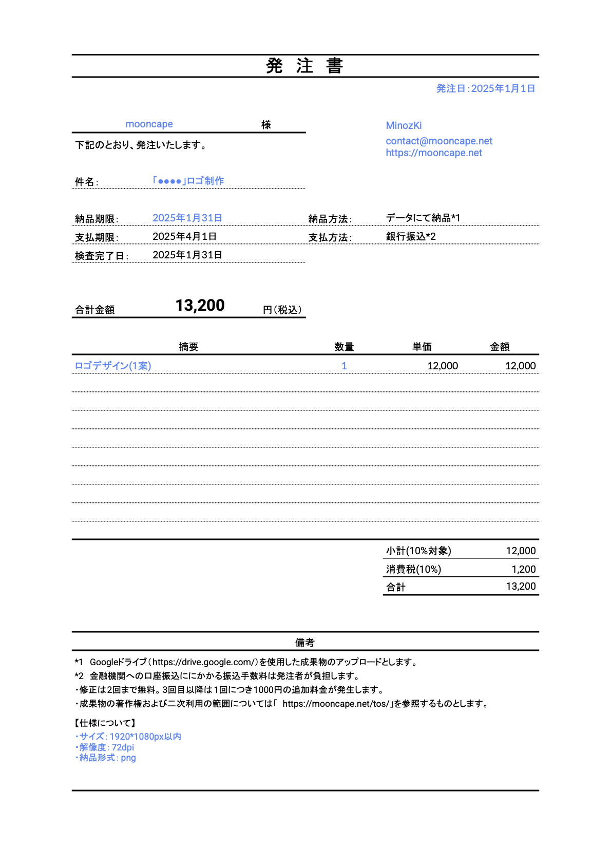 mooncapeではご依頼をお受けするにあたり、双方の主体的な内容確認を重視し発注書の作成・送付をお願いしております。
