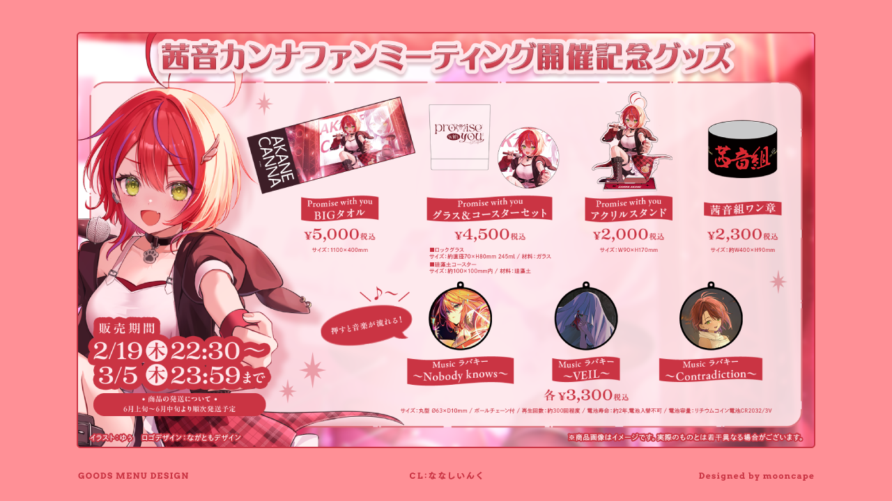 茜音カンナファンミーティング開催記念グッズ お品書き