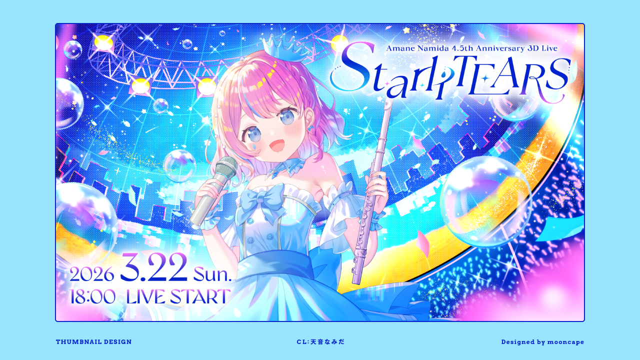 2026/03天音なみだ 4.5周年記念3Dライブ “StarliTEARS” ロゴ・サムネイルLOGOTHUMBNAILVTuber天音なみだhttps://www.youtube.com/live/VdEZ-a-0BcU SHARE